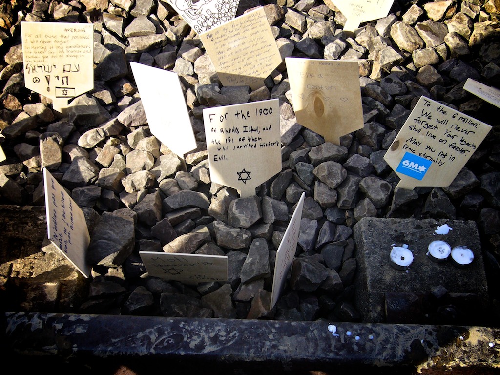 Small sign written by Noah Botman, left on the rail track between Auschwitz and Birkenau,while on the March of the Living (Poland, April 2013)