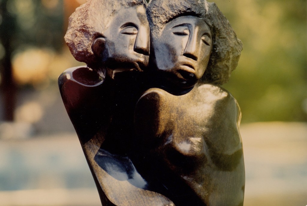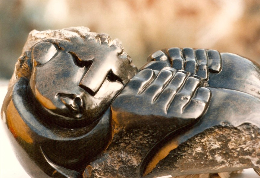 While John Takawira and Bernard Matemera were undoubtedly the most talented of the first-generation of Shona sculptors — each with their own styles — a few years later, Gladman Zinyeka’s virtuosity lifted him for a few short years head and shoulders above all artists of the second generation — perhaps with Kennedy Musekiwa, his own brother Thomas Zinyeka and cousin Jethro Zinyeka not too far behind. If Gladman had not died in 2001 at the young age of 39, I am convinced that he perhaps would have become the most famous of all Zimbabwean artists, and one of the very best sculptors to have ever lived. His skills and creativity where unmatched, as was the diversity of the work he produced. While John Takawira worked primarily with Serpentine, Kennedy Musekiwa with a variety of sometimes unusual stones, Gladman at the time worked almost exclusively with Springstone — a stone that I personally found to be far more organic than other stones. “Springstone is breathing. You can see it. You can feel it,” he said. “It is a stone with a texture that is not quite as smooth as Serpentine, but that is a lot better at celebrating the human nature.” Certainly, it was a stone that worked beautifully at expressing the profound humanity that was always at the very heart of Gladman’s work.