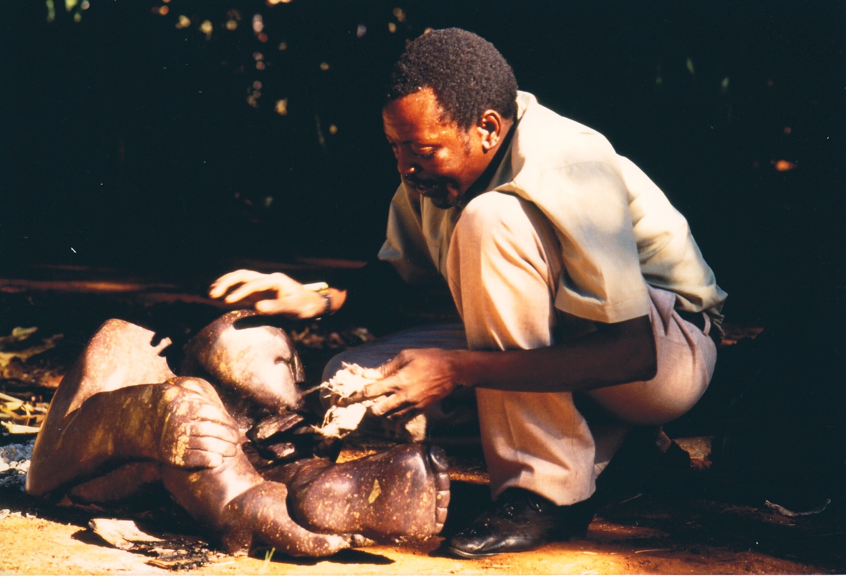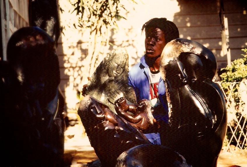 The story of Richard Muzarurwi will be the last of this blog entry. It is a story that is both emblematic of a continent and of an entire generation of talented young African men and women who lived in the ‘80s and ‘90s under the constant Damocles’ sword of AIDS and sadly never made it into old age. Even younger than Gladman, poor Richard died before he had hardly reached adulthood or fame — barely in his early thirties. “He got the ‘love’ disease,” as one of his friends told me years later — a cold blooded “love disease” of little love indeed that, at the time, was merciless and almost always a death sentence. It pains me to remember Richard today, so glorious, so elegant, so loving, so talented, so full of life. It pains me to imagine what he was destined to achieve, if his life had not been cut so short. Richard was very young and not well established when I met him in late 1993. He had a small workshop on the side of the road. Despite the inevitable grime of these dusty roads, he was always well dressed in immaculate clothes, always charming and constantly surrounded by a crowd of young men and women also in their twenties, all celebrating life and art, sadly unaware — as often young people are — of how precious both truly were. Richard’s life was perhaps short, and his work truncated far too early, but the beauty he created will forever remain. If not for his passing so early he would have undoubtedly grown into one of those African giants.